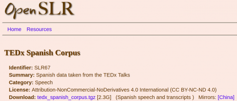 The TEDx Spanish Corpus is a dataset of 24 hours of duration destined to create acoustic models for automatic speech recognition. It was published at the OPEN SLR Website ( http://www.opensl...