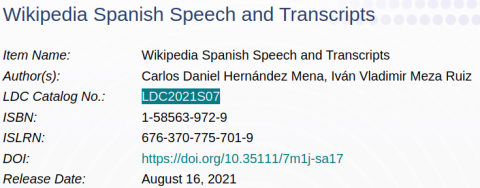 Few days ago (August 16th, 2021) the Linguistic Data Consortium (LDC) has released the Wikipedia Spanish Corpus developed by the CIEMPIESS-UNAM Project through the Social Service Students be...