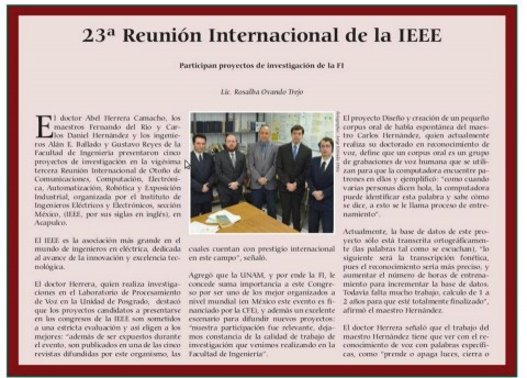 We presented a paper about the Corpus CHM150 at the ROC&C Conference organized by the IEEE. This event was reported at the "Gaceta DIgital" of the Faculty of Engineering ( época 2, año V, nú...